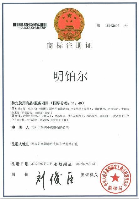 明鉑爾®國家商標知識產(chǎn)權榮譽證