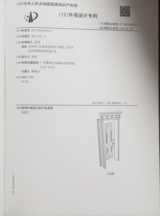 祝賀明鉑爾?國家產(chǎn)權證書